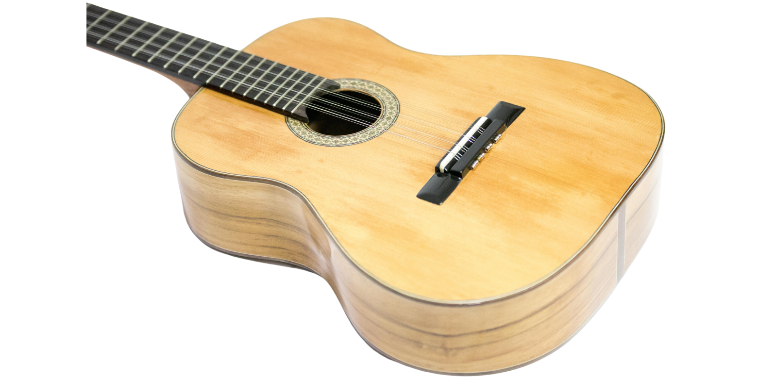 Tapa de Pino abeto alemán macizo, Arce flameado macizo para el fondo y los aros. Está histórica guitarra de Lacote, donde grandes obras de Fernando Sor nacierón, proporciona un sonido de época cálido, bello y dulce como ninguna otra.